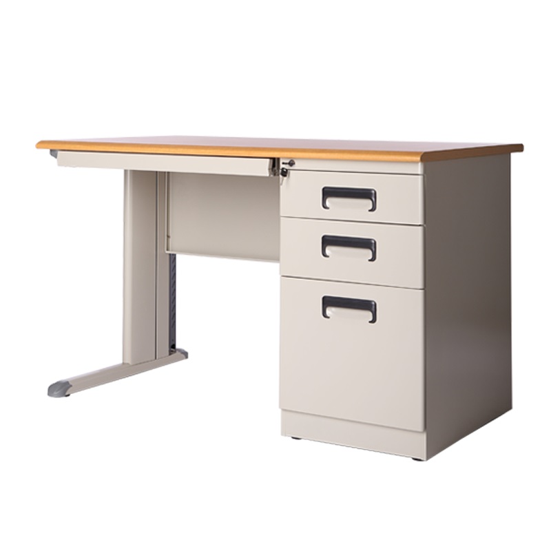 1. Meja yang cocok ditempatkan di ruang kelas, ruang guru, maupun ruang kerja. 2. Tipe : Knock Down 3. Ukuran: - Panjang : 1.200 mm - Lebar : 700 mm - Tinggi : 735 mm 4. Ketebalan: - Alas Meja : MDF 25 mm - Laci Tengah : 0,70 mm - Penyangga Laci Tengah : 1,20 mm - Panel Depan : 0,60 mm - Laci Samping : 0,70 mm - Bodi Laci Samping : 0,70 mm - Kaki Meja : 0,70 mm 5. Warna: - Alas meja : Brown Wood - Kaki meja, panel depan, dan laci : Grey cat powder coating 6. Spesifikasi: - Laci samping terdiri dari 3 buah ruang laci. - Laci tengah dapat digunakan untuk menyimpan barang maupun tempat keyboard komputer. - Alas meja berbahan MDF tebal, halus, dan rata. - Kaki meja model L. - Bidang atas meja finishing lapisan non transparan dengan bahan High Pressure Laminate (HPL) menutupi ujung bidang kerja tanpa sambungan. - Logam sheet metal finishing powder coating.