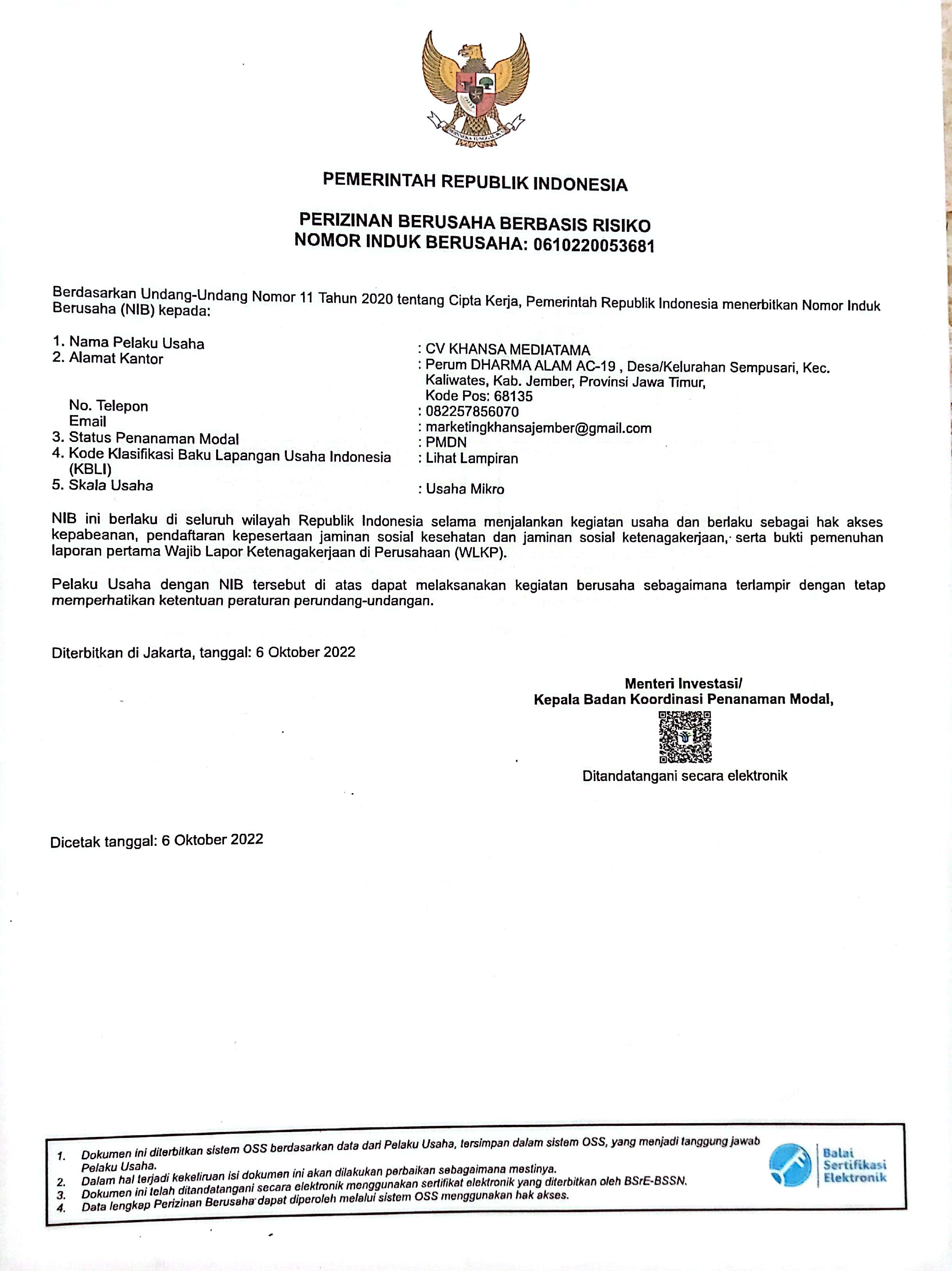 | PDN(Produk Dalam Negeri) | : | Ya |